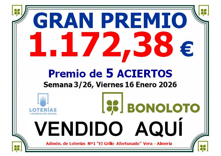 Sorteo del 24/01/202620015Serie: 0 - Fracción: 0PREMIO: 600000€