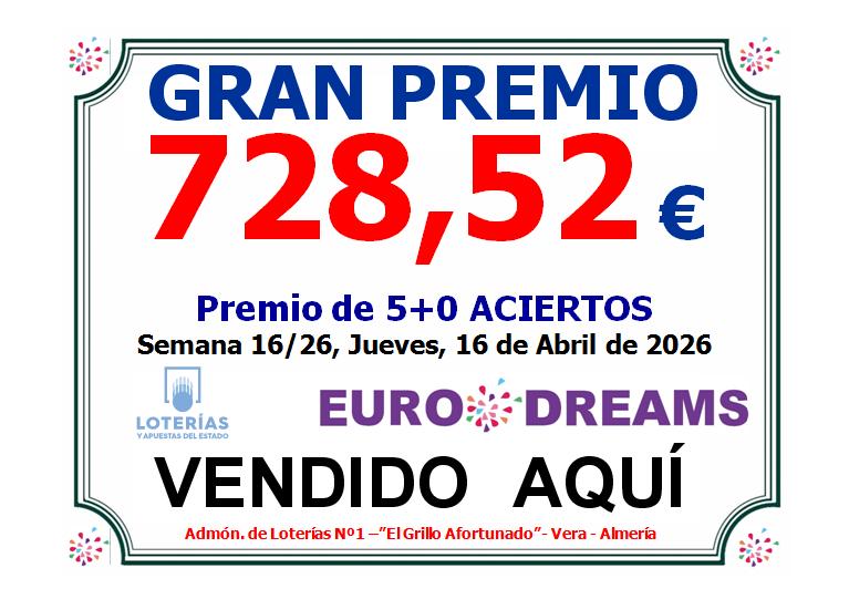 Sorteo del 16/04/202639770Serie: 0 - Fracción: 0PREMIO: 300000€
